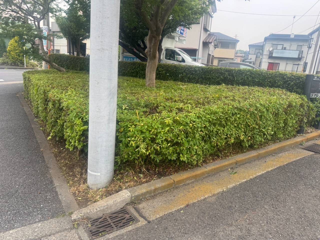 施工実績紹介No.72【横浜市都筑区東山田】街路の除草とオオムラサキツツジ・ヒイラギモクセイの刈込作業を実施|安全で美しい道路環境づくり