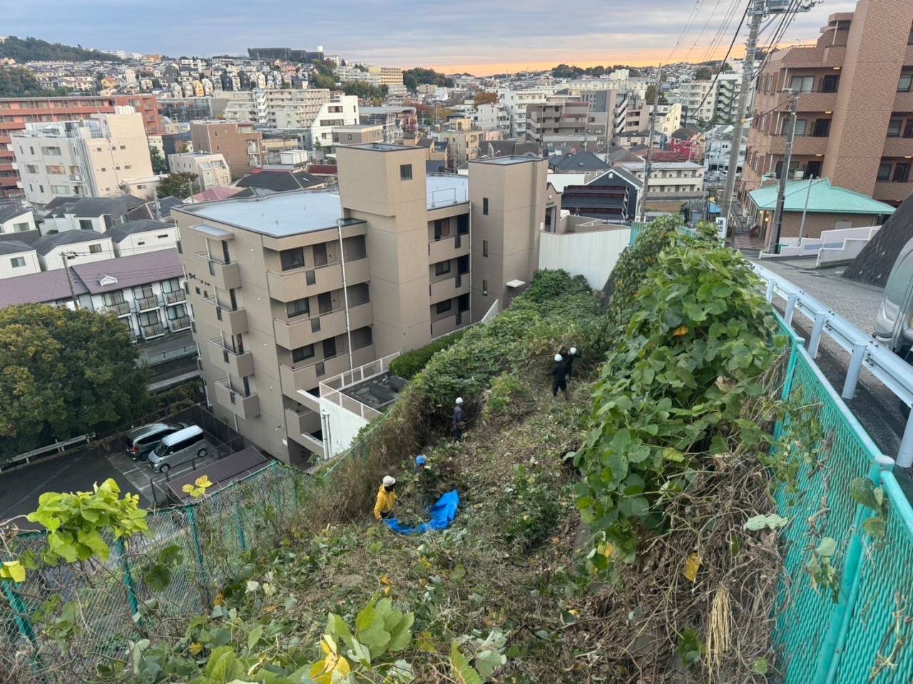 施工実績紹介No.78【横浜市港南区上永谷】道路用地の急斜面地で草刈作業を実施|安全確保を重視した法面管理