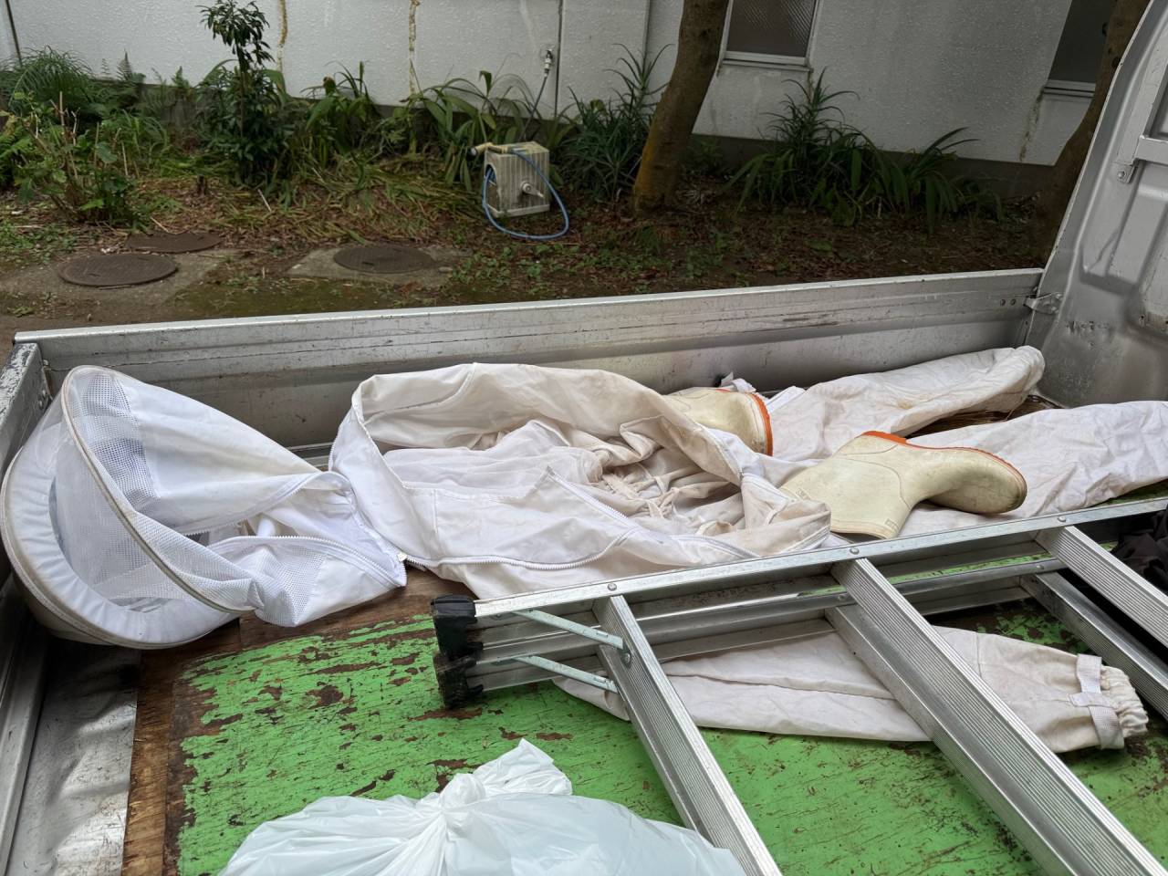 学校敷地内で発見されたスズメバチの巣除去作業 を行いました。