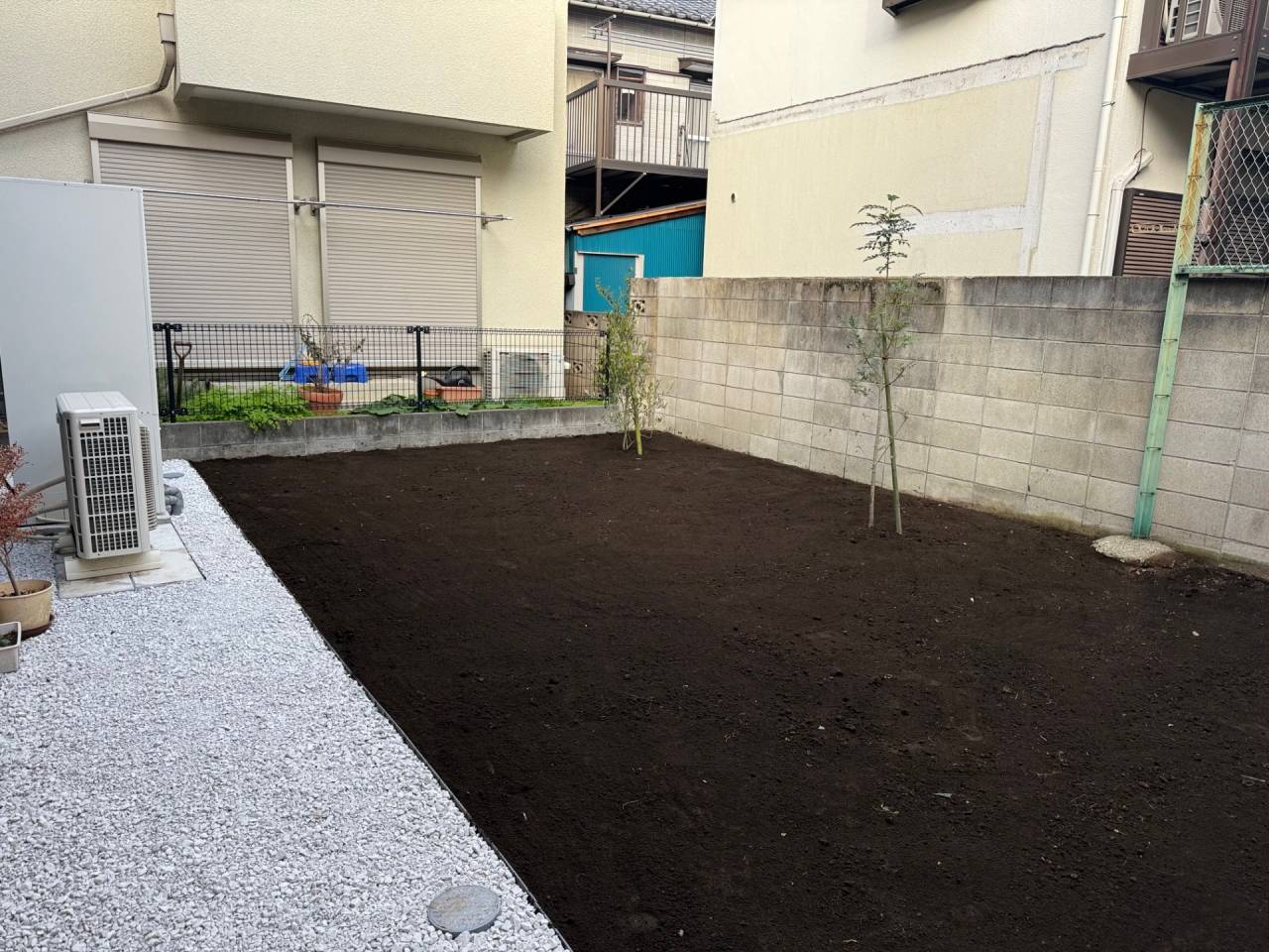 庭の土壌改良、防草シート施工、砂利敷き、植栽工事 に対応しています。