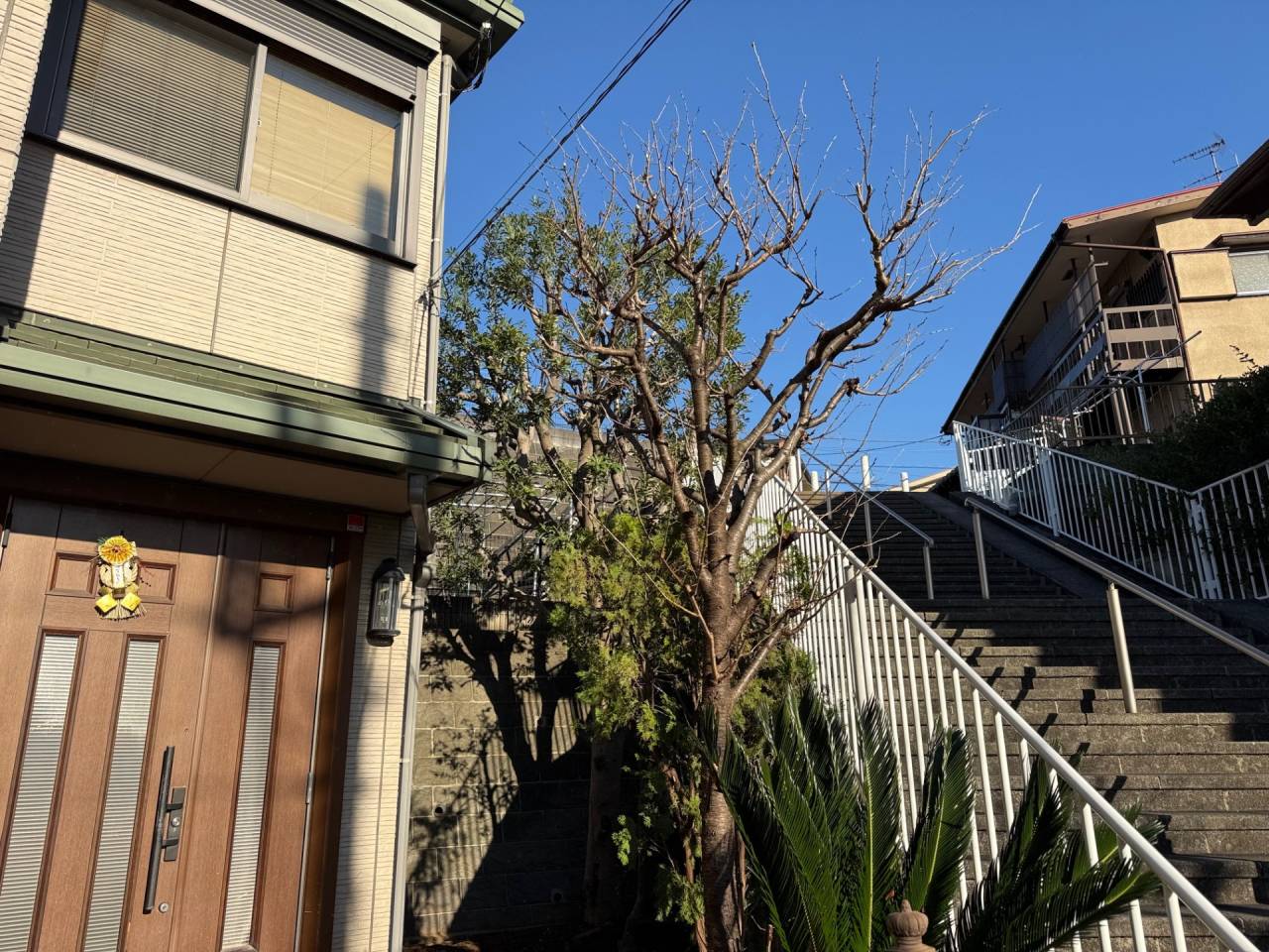 施工実績紹介No.153【横浜市鶴見区駒岡】お庭の除草・サクラ/ゴールドクレスト/ゲッケイジュ/ヤマモモ剪定・ウッドデッキ撤去作業を実施